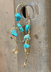 Like a ribbon dancing in the wind, the Blue Whimsy Earrings bring movement and color to your style. Each earring starts as a single length of gold wire, shaped by hand into a free-flowing swirl that feels as organic as the desert air. Along the curve, genuine turquoise stones add vibrant pops of blue-green, their natural variations making every pair unique.