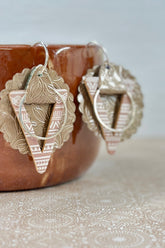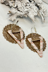Canyon Harmony earrings transform reclaimed metal, embossed detail, and bold leather into a modern boho design that carries both desert charm and soulful artistry.