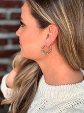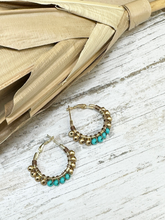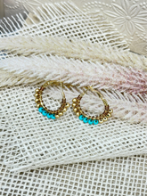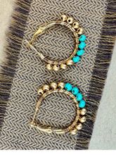 The Mesa Glow Hoops capture that soft shimmer of sunlight against canyon walls — an effortless blend of turquoise tranquility and earthy bronze. Each bead is hand-wired with care, wrapping around golden hoops to create a timeless, desert-inspired glow.