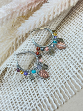 • 20 mm silver-tone hoops, hand-wrapped with Czech glass beads
