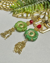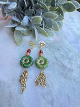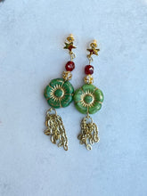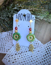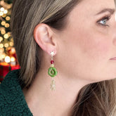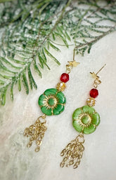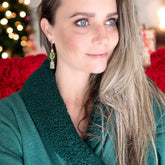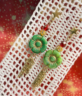 A festive pop of green, gold, and holiday cheer — these handcrafted Czech glass dangle earrings bring a warm, playful swirl of movement and color to your Merry & Bright season.