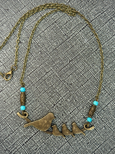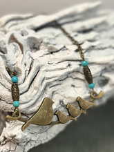 Celebrate connection and simple beauty with the Feathered Friends necklace. A bronze bird pendant rests on a branch, accented with turquoise seed beads and patterned metal tube beads, creating a piece that feels both earthy and meaningful.