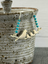 A silver-tone bird pendant with turquoise glass beads and silver spacers, capturing the beauty of wide-open skies.