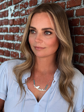 The Silver Horizon necklace is a nod to wide-open skies, endless adventure, and the quiet beauty of togetherness. What makes it special? The centerpiece is a silver-tone bird perched on a branch — a timeless symbol of freedom and harmony. Balanced on each side are turquoise glass beads and silver-colored spacers, offering a clean, modern feel that still carries earthy warmth.