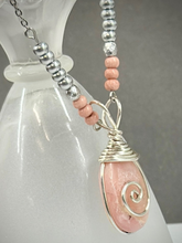 Materials: Peruvian Pink Opal, Czech glass beads, 18-gauge silver-plated wire, stainless steel chain