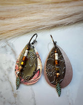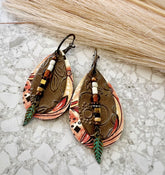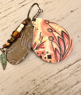 Every inch of these earrings whispers intentionality—from the hand-painted watercolor swirls to the textured, repurposed metal that once lived a very different life. Their layered design blends artful play with desert-worn soul, making them a go-to for days when you’re feeling grounded, creative, or a little bit wild.