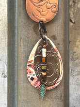Hand-painted watercolor doodles, embossed upcycled metal, and earthy beads come together in this dreamy desert-inspired earring. Reversible, lightweight, and truly one-of-a-kind.