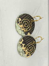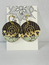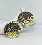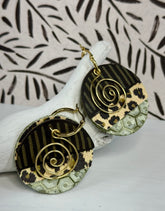 Unleash a little wild with these layered faux leather earrings that blend urban grit with safari soul. From bold stripes to golden leopard spots and embossed olive green texture, each layer is a tribute to adventure—and it’s all brought together by a hand-spun golden spiral that steals the show.